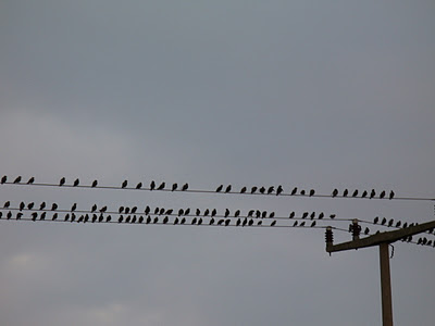 Binnen kurzer Zeit füllten sich die Drähte der Stromleitungen. Es wurden immer mehr und am Boden warteten noch unzählige „Fluggäste“ auf einen Draht-Platz.