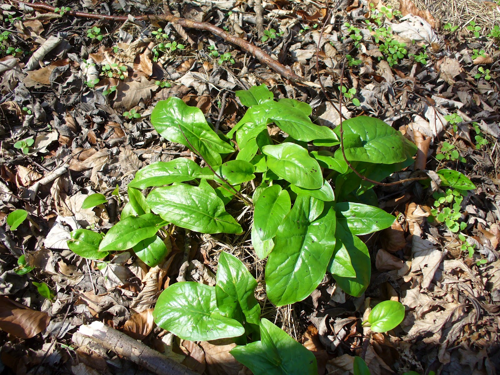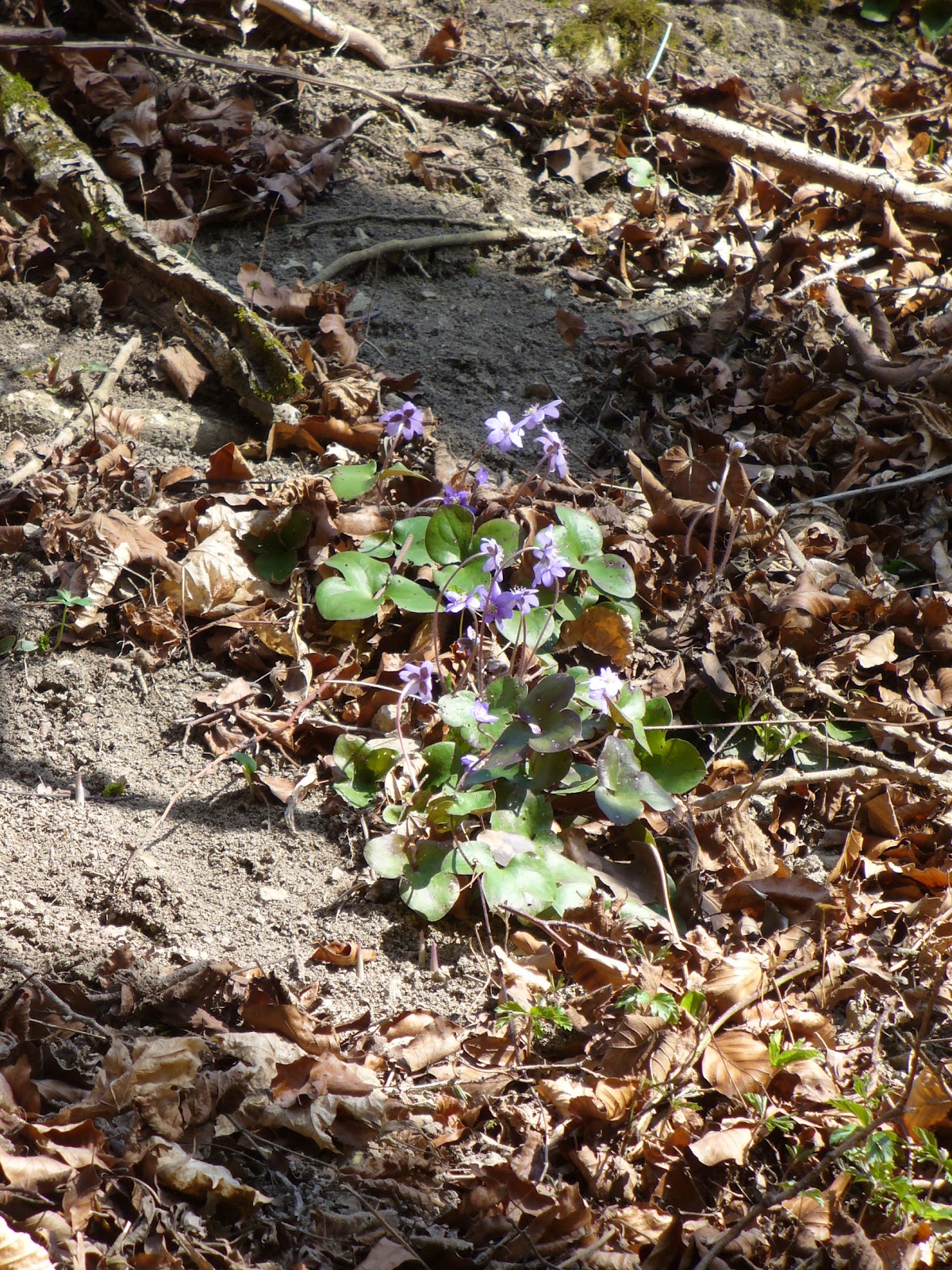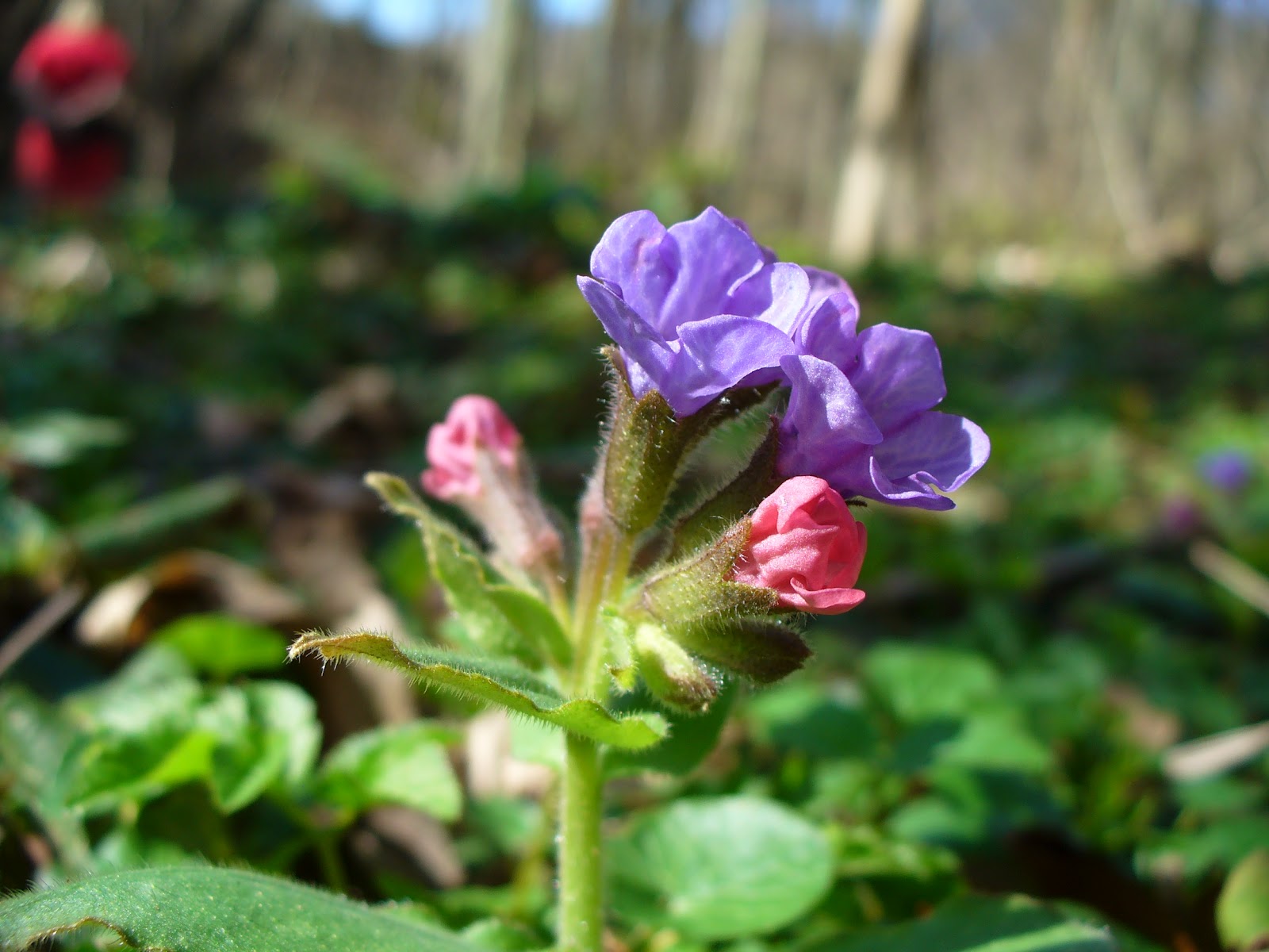 Dazwischen blinken kleine Goldsternchen und das Violett/Rosa der Blüten des Lungenkrautes, auch die Leberblümchen sind da. Weiße und gelbe Buschwindröschen zeigen sich schon hier und da und der Aronstab treibt schon mal seine Blätter voraus.