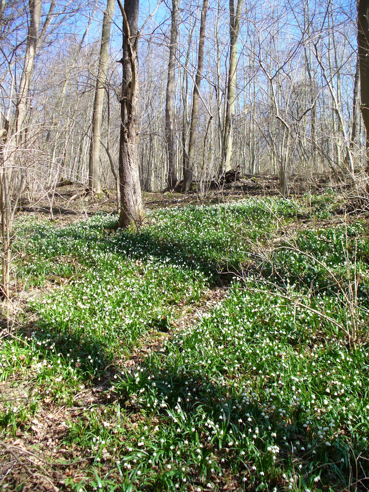 Auf der Haut ist die Wärme der Sonne zu spüren und ein leichter bewegter Lufthauch. Die Augen schauen das frische Grün und einen Blütenteppich aus weißen Glöckchen – die Märzenbecher.