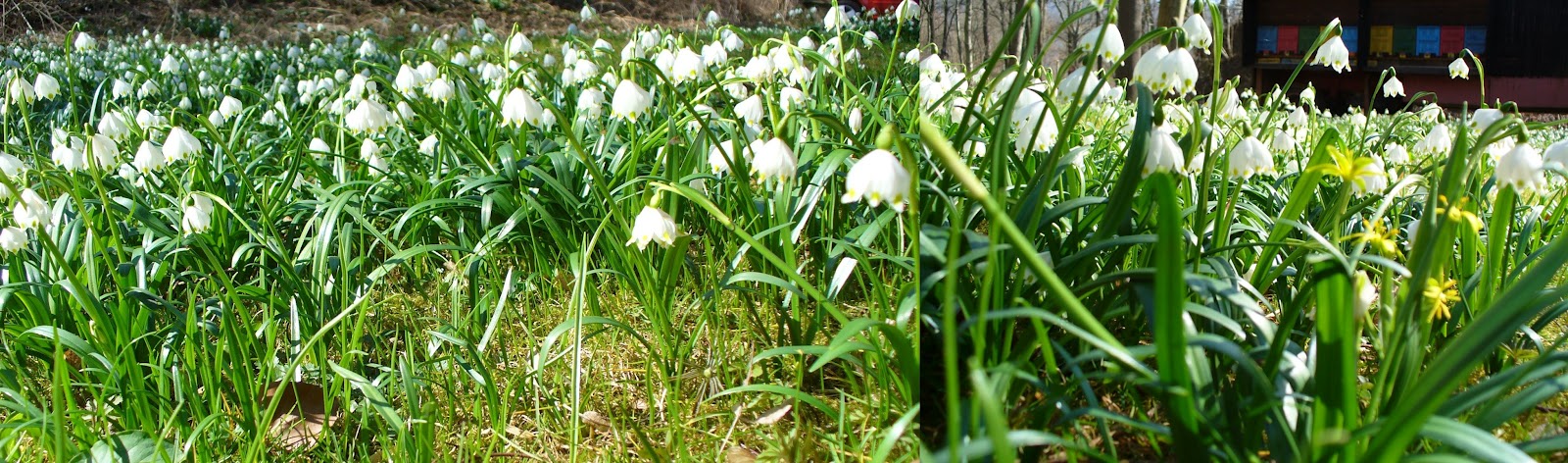 Der Imker, den wir unterwegs trafen, hatte für seine Bienen einen guten Platz gewählt, mitten in diesem Meer blühender Märzenbecher. Wie wohl dieser Honig schmecken wird?