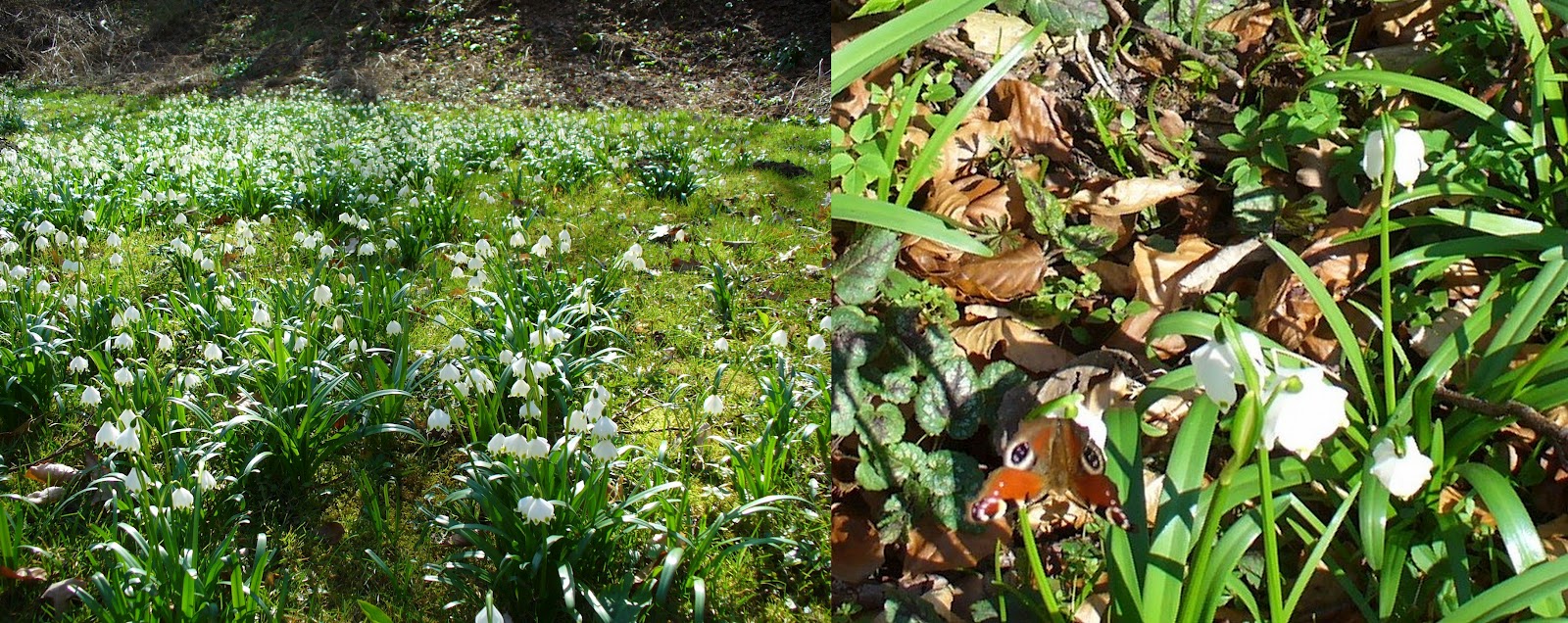 Als ich wieder zu Hause war bemühte ich das Internet für Informationen mit dem Ergebnis: die Märzenbecher sind „Frühjahrsdufter“, der süße Duft ihres Nektars lockt Bienen und Schmetterlinge an. Ist für frühe Insekten die erste Nahrung und giftig (Blätter und Zwiebel) um nicht von anderen Tieren gefressen zu werden. Der Duft wird als nach Veilchen duftend beschrieben, da der botanische Name Leucojum vernum auch mit „weißes Veilchen des Frühlings“ benannt wird, ein Frühlingsbote. Es gehört zur Pflanzenfamilie der Amaryllisgewächse und steht unter Naturschutz.