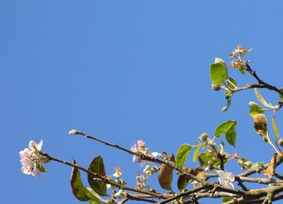 Heute morgen fuhr ich noch einmal hin und Tatsache: Es waren Blüten – Apfelblüten.