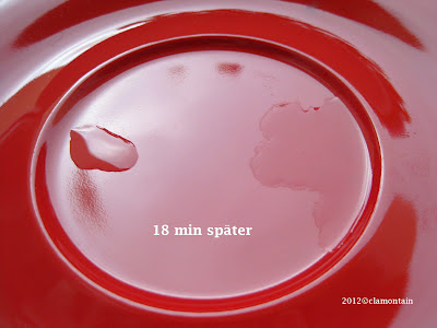 Der Tropfen ÄÖ lief sofort fast über die ganze Oberfläche breit, es bildeten sich Filmlöcher. Die Farbfahne fehlte!