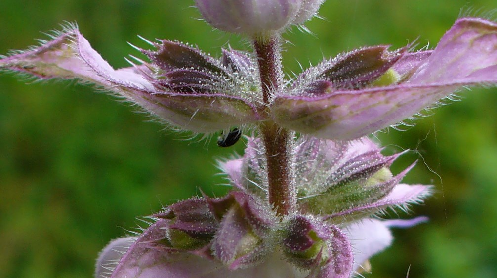 Der Muskatellersalbei ist ein richtiges Klebemonster. Faßt man Blüte,