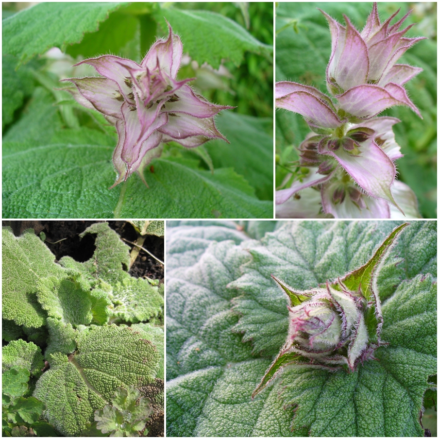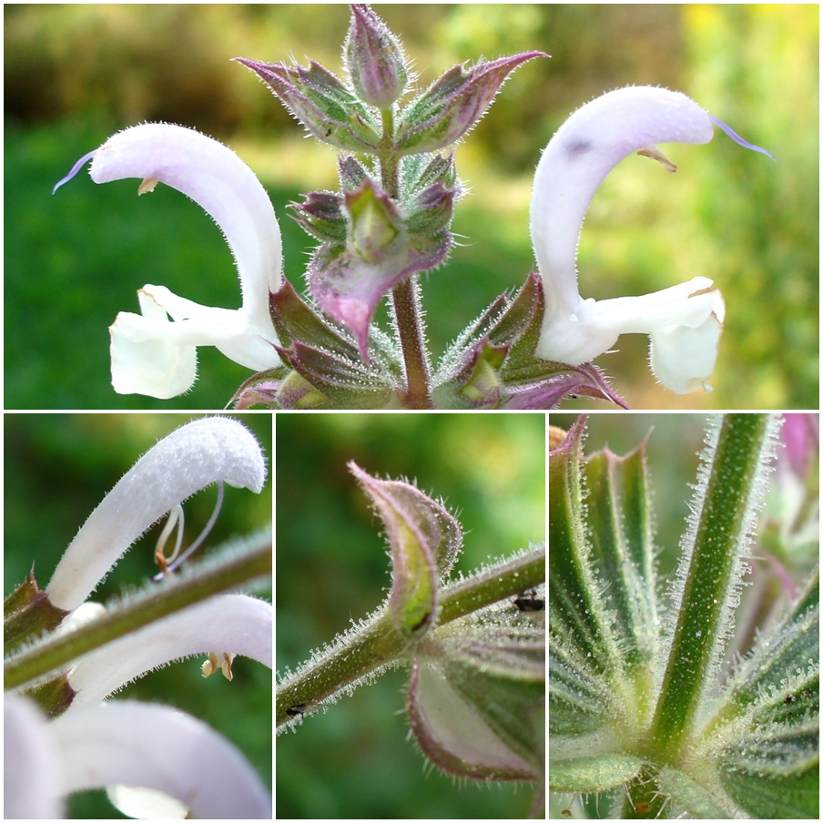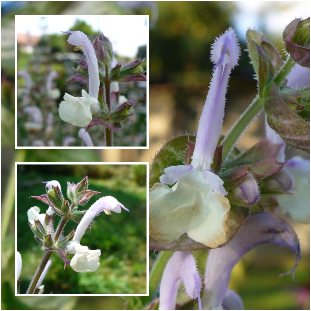 Die Muskatellersalbei-Staude (re/li oben) – Die Salbei-Staude in blau(re/li unten)