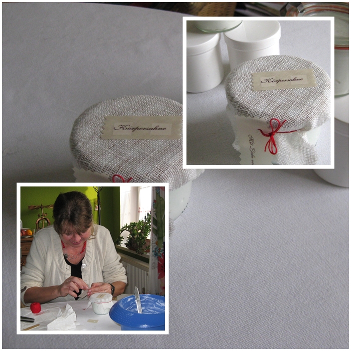 Die fertige Körpersahne in saubere(!) Behälter füllen. Beschriften und fertig.