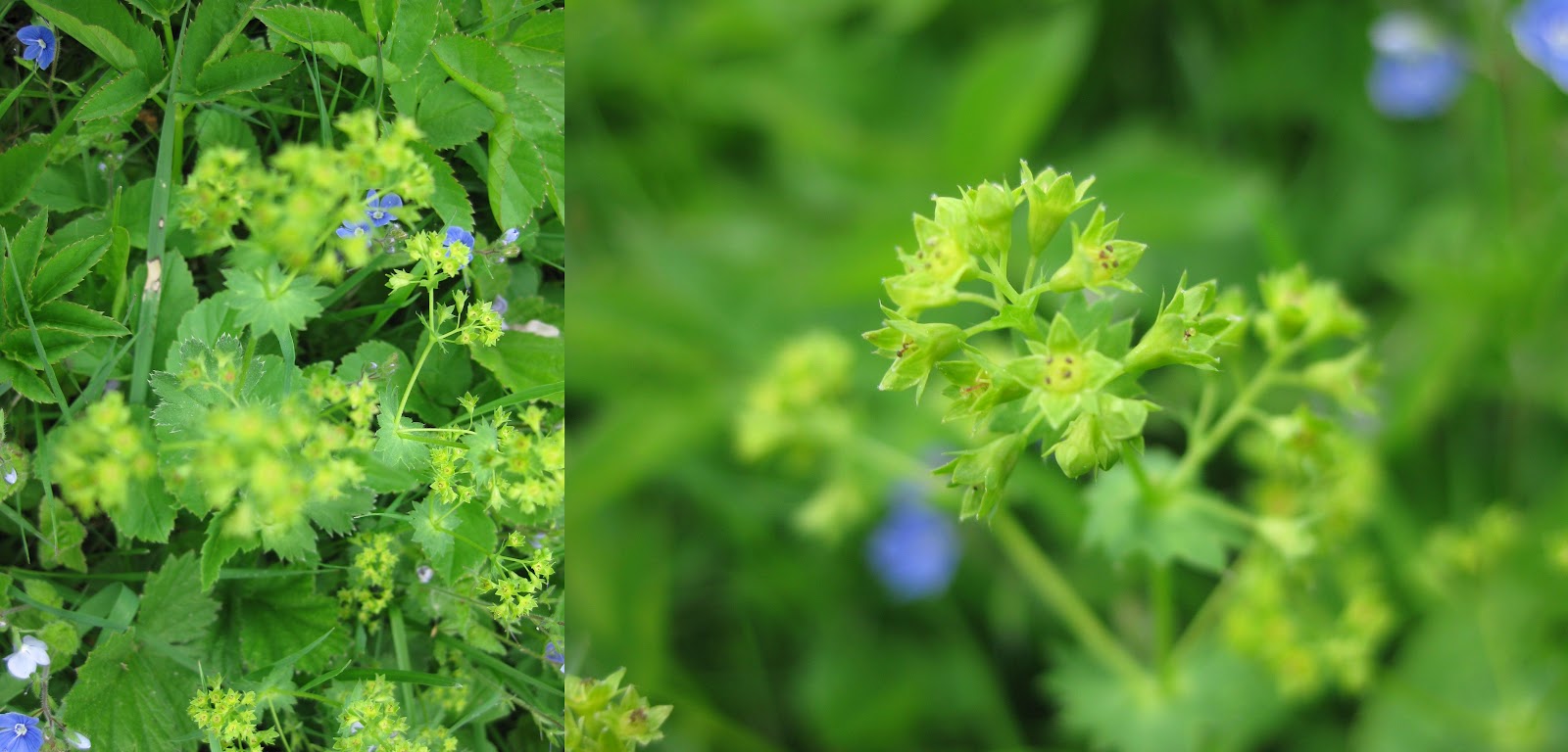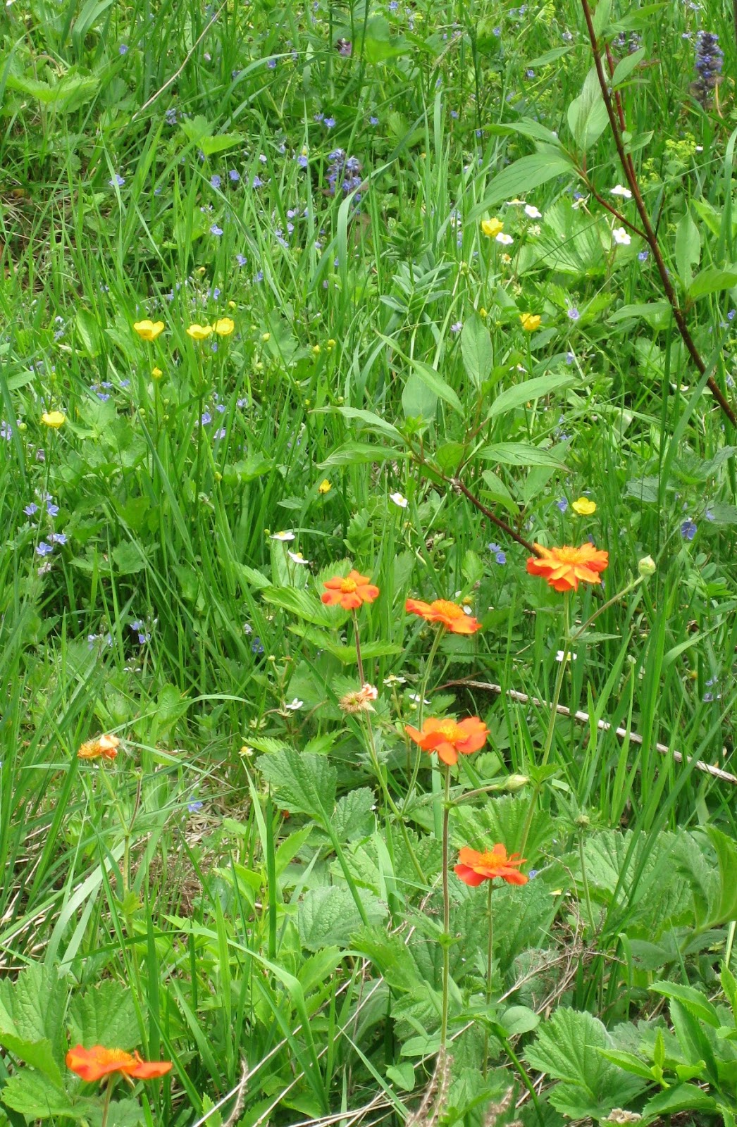 Es tut in der Seele weh, diese Pracht mit dem Rasenmäher zu malträtieren. Ein Teppich aus Frauenmantel, Ehrenpreis, kriechender Günsel, Vergissmeinnicht, Hahnenfuß, Wiesennelke, der orangen Blume (?), Spitzwegerich, Walderdbeeren, Waldmeister und auch Wiesensalbei, Gundermann, Schöllkraut, Päonien…